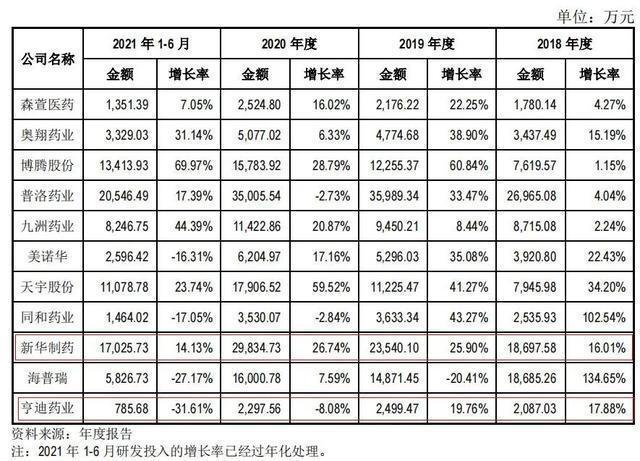 对于亨迪药业而言,其在研发、技术投入上均与同赛道的新华制药有明显距离。以2020年为例,亨迪药业2297.56万元的研发投入、120人的研发及技术人员总数,相较于新华制药2.98亿元和853人的研发及技术团队差距明显。营收规模上新华制药更是亨迪药业的十多倍。