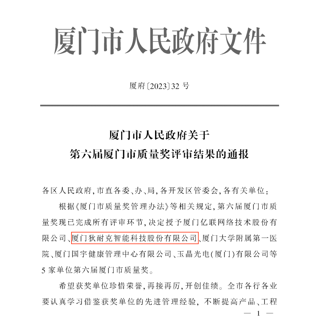 “厦门市质量奖”是厦门市政府设立的最高质量荣誉。狄耐克获此殊荣,印证了公司在质量管理、自主创新、经营绩效和社会效益等方面取得的突出成就,具有显著的示范带动作用,同时对厦门高质量发展作出了积极贡献。
