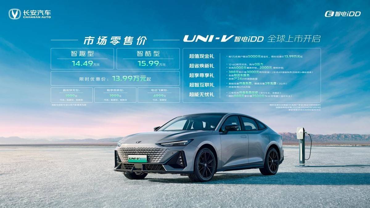 其中UNI-V智电 iDD推出两款车型,售价分别为14.49万元和15.99万元,限时优惠价13.99万元;UNI-K智电 iDD共推出4款车型,售价区间为18.79万-21.59万元。与售价一同公布的还有长安汽车专门为消费者推出的一系列购车权益,其中包括超值现金礼(UNI-V智电iDD专享)、超省焕新礼、超享尊享礼、超智互联礼、超能无忧礼在内的丰厚购车礼遇。