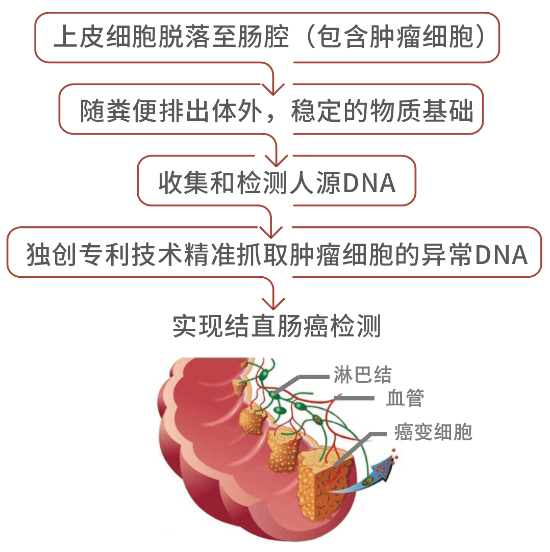 粪便DNA肠癌检测技术,通过检测粪便中脱落的肿瘤细胞中的肿瘤标志物,来判断受检者是否可能患有结直肠癌或者癌前腺瘤,让医生帮助患者早发现、早治疗,将肠癌尽可能的阻断在早期或者癌前病变阶段,致力于达到预防或者根治结直肠癌的目的。