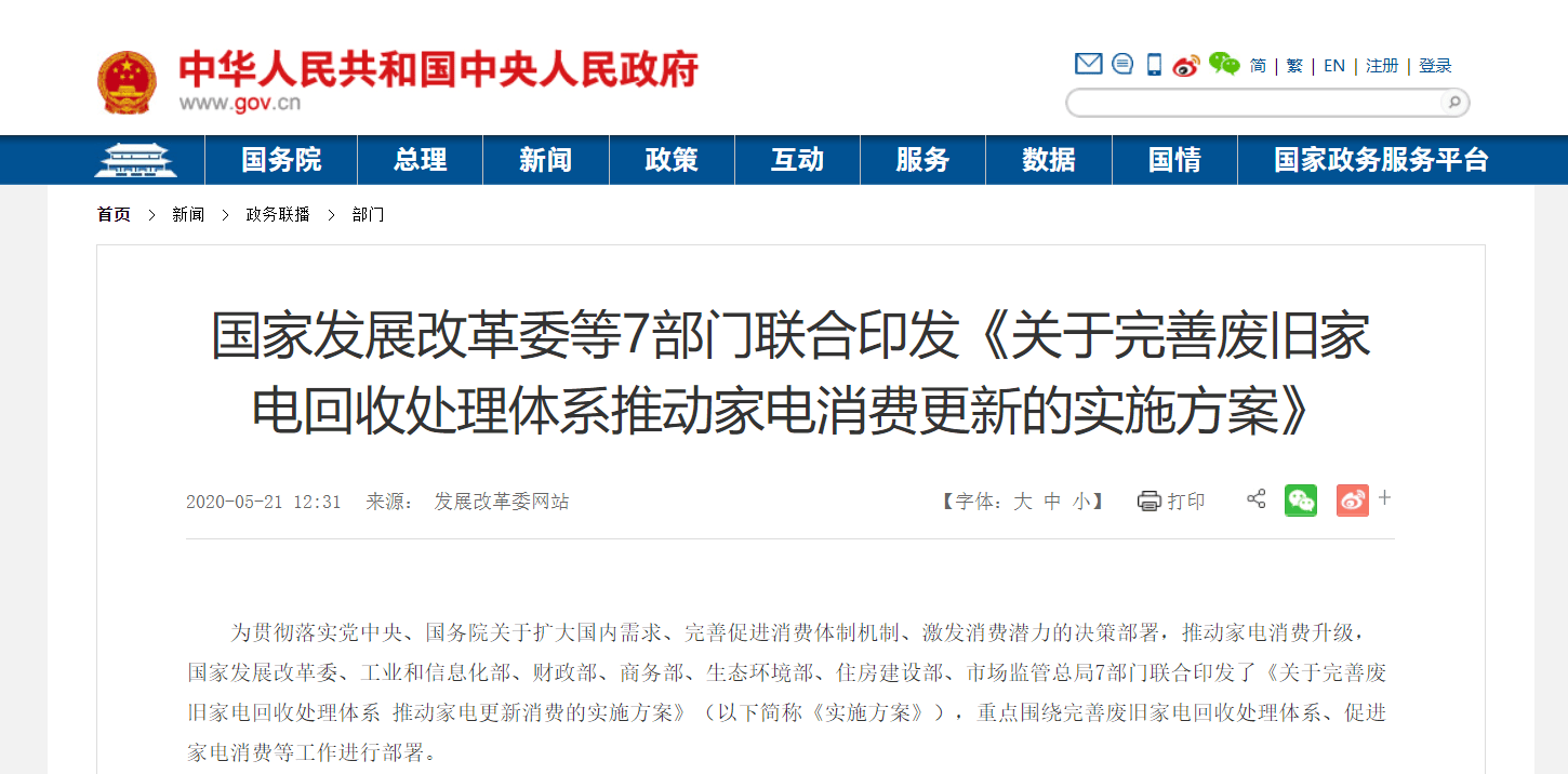 近日,国家发展改革委等7部委联合印发《关于完善废旧家电回收处理体系 推动家电更新消费的实施方案》,为贯彻落实《实施方案》精神,更好地促进家电更新消费,组织开展好以旧换新活动,我们联合发起倡议: