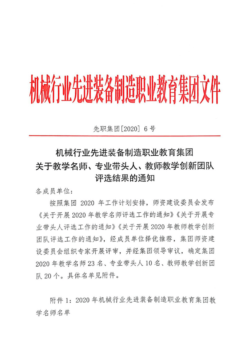 > 河南机电职业学院教师教学创新团队入选(中国)机械行业先进装备制造职业教育集团教师教学创新团队2021-01-08