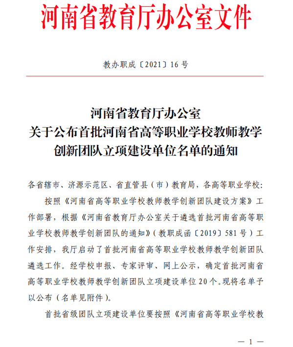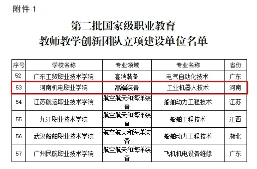 > 突破!河南机电职业学院入选第二批国家级职业教育教师教学创新团队立项建设单位2021-08-03
