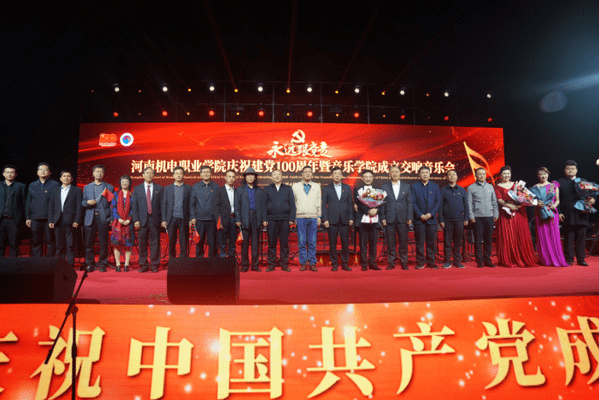 2021年4月22日晚,河南机电职业学院在知行广场隆重举行“永远跟党走”庆祝建党100周年暨音乐学院成立交响音乐会,献礼中国共产党百年征程、百年辉煌。河南省教育厅总督学李金川,体育卫生艺术教育处处长聂世忠,教育督导办公室主任王明忠,职业教研室主任李森,河南纪检监察宣教基地主任张爱华,新郑市税务局副局长申宏杰,以及新郑市龙湖镇人民政府、兄弟院校、合作企业、媒体朋友等领导和嘉宾莅临现场。河南机电职业学院领导班子、全体教职工,与近3000名学生代表一起现场观看音乐会,线场课堂师生通过网络收看音乐会直播。