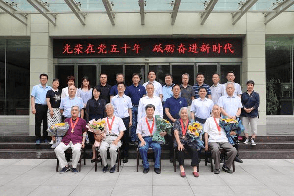 2021年6月29日上午,河南机电职业学院举行了“光荣在党50年”纪念章颁发仪式暨庆祝建党100周年主题党课宣讲活动。仪式上,学校党委书记张震向出席仪式的50年以上党龄的老党员代表刘廷奇、张秀荣、叶周彦、任中芳、张清法颁发“光荣在党50年”纪念章,校长王本亮为他们送上鲜花。学校领导班子、在职党员代表参加仪式,仪式由党委副书记鲁俊民主持。