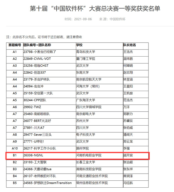> 喜报!河南机电参赛队夺得第十届“中国软件杯”大赛一等奖2021-09-07