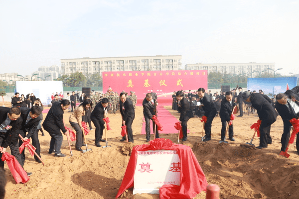 2021年10月25日,河南机电职业学院隆重举行音乐学院综合楼奠基仪式。学校党委书记张震、校长王本亮、党委副书记鲁俊民、纪委书记董险峰、副校长王发清、副校长谷献晖,央企建设集团有限公司项目总经理金捍卫,以及学校党政管理部门负责人、二级学院代表和音乐学院学生代表出席奠基仪式。