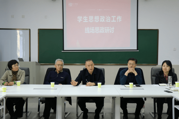 2021年11月11日下午,设计学院党员活动室座无虚席,时而笑声朗朗,时而掌声阵阵,气氛十分热烈。学校党委书记张震走进设计学院,以座谈会和翻转课堂的形式,用亲切幽默的语言和鲜活生动地讲解,对设计学院1年多的线场思政教学进行调研,为与会的思想政治工作者、设计学院新老学生代表带来一堂气氛活泼、有“料”会“聊”、发人深省的思政课。