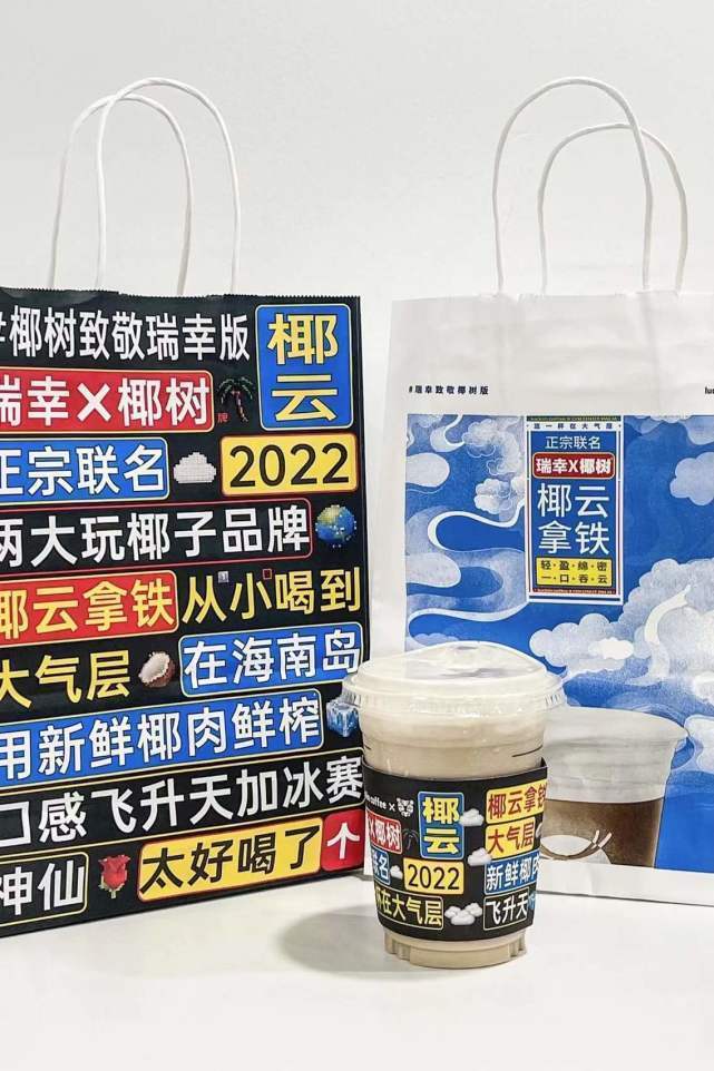 除了口感美味,作为瑞幸咖啡与椰树椰汁两大“玩椰品牌”的联名之作,椰云拿铁还拥有十分吸睛的包装设计。无论是正宗Word风、视觉系撞色的【椰树致敬瑞幸版】,还是清新文艺、青春活力的【瑞幸致敬椰树版】,都堪称“含椰量”爆表的潮流单品!开喝之前,先拍照晒图收获无数点赞,饮用体验更加分哦!