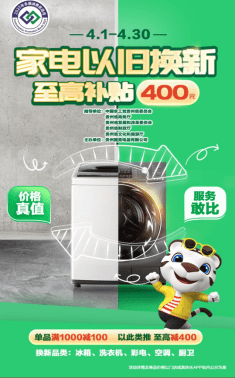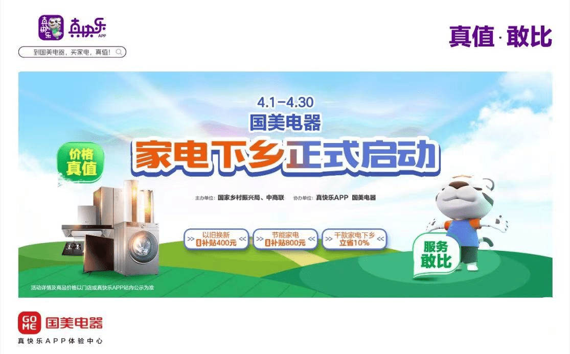 针对于废旧家电的问题,真快乐APP和国美电器作为积极响应政府“焕新”政策的企业之一,推出了“以旧换新、节能补贴”的活动,以真快乐APP为媒介,为用户提供了一个绿色便携的家电换新渠道。