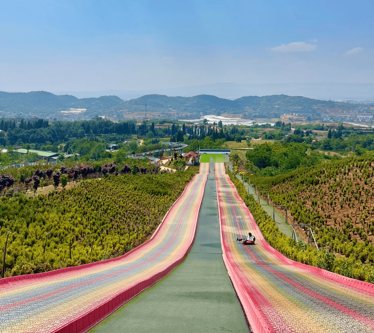 春天的花,总是开得格外的艳。百花箐山谷系嵩明境内集自然观光、休闲度假、文化体验等于一体的乡村旅游综合体,是天然的森林“大氧吧”。在这里,有彩虹滑道和山地越野可以让你肆意感受刺激,更有花海观光和水果采摘让你体验慢生活。此外,百花箐山谷还有婚纱摄影、草坪婚礼、拓展乐园、植物迷宫、卡丁车、小火车乐园、滑草场、丛林拓展等多种业态,带你一站式体验休闲度假、田园观光、休闲游憩、户外露营、亲子休闲、康体运动、生态养生等多种形式的乡村旅游项目。
