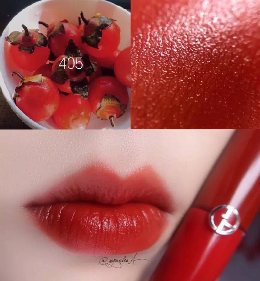 可以说是一直以来都是火到断货的颜色了!小编也是阿玛尼红管唇釉的粉丝!上嘴是丝绒哑光的质感,滋润但是不拔干,嘴唇状态不好的时候也可以用,就连沙漠干嘴皮都可以用,阿玛尼405可以说是合影杀手了,涂上它就是人群中最闪亮的一颗星,就算是黄黑皮买了它也不会踩雷!尤其是秋冬季节更是这只口红涂上去最炫彩的时刻!