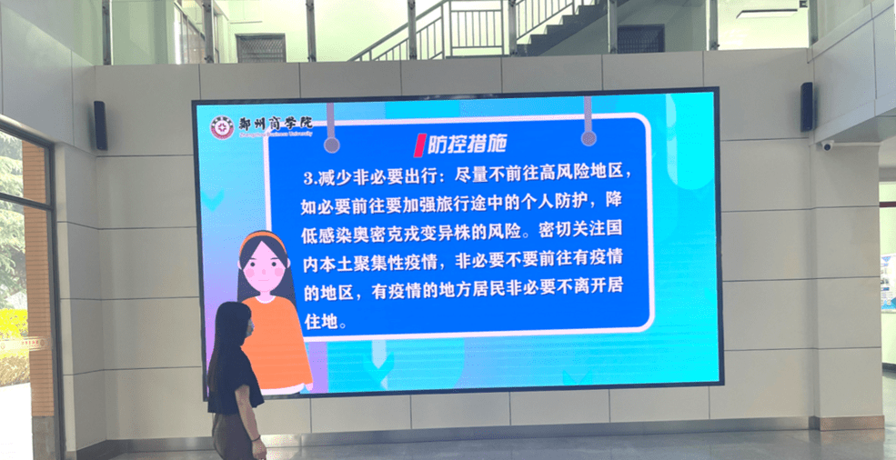 学校高度重视防控宣教和思想引导,宣传专班创新宣传形式,丰富宣传载体,凝聚起师生共渡难关的强大力量。一是突出重点,普及普及防疫政策和防疫知识。通过博文、短视频、宣传橱窗、海报横幅、大屏电子屏等形式,积极策划“战疫课堂”专题推送,教育引导广大师生正确认识当前疫情防控形势,了解掌握上级防控政策和学校防控举措,提高个人防护意识和防护能力。二是强化宣传,凝聚家校共抗疫情的决心与共识。依规引导师生员工和家属、同住人员遵守属地规定,积极配合学校各项防疫政策,汇聚力量、坚定信心。三是挖掘典型,上好疫情防控思政大课。充分挖掘疫情防控育人元素,教育引导广大师生厚植家国情怀、彰显责任担当、理性表达自我。四是回应关切,做好心理疏导与人文关怀。密切关注网络舆情动态,及时回应师生合理诉求与关切,妥善解决师生工作、学习和生活中的实际困难,消除疫情时期的恐慌心理。
