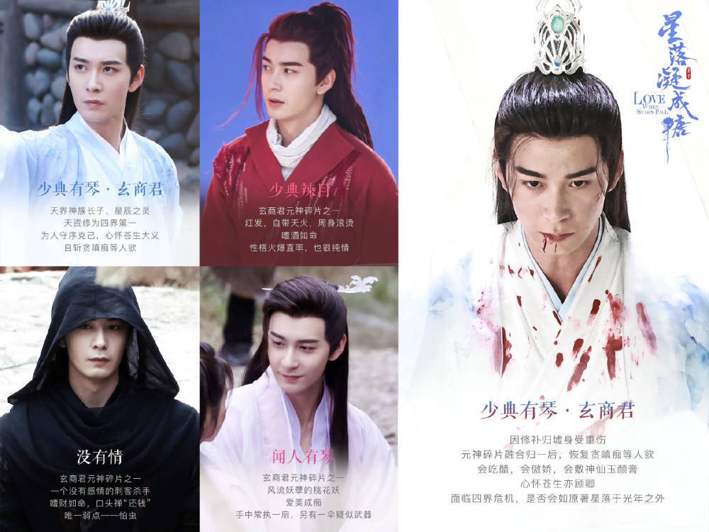 陈星旭此次在《星落凝成糖》中需要一人分饰五角,角色性格大不同,服装造型也大不相同。《东宫》李承鄞的印象先入为主,观众对陈星旭的感情很复杂,又爱又恨,此次少典有琴能让他“洗白”吗?