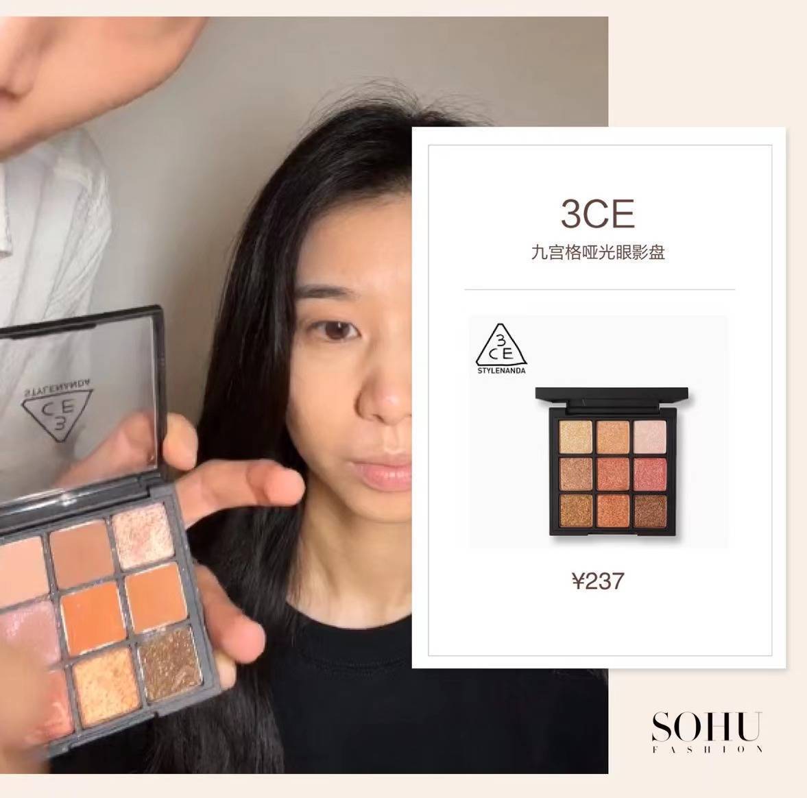 这款3CE九宫格就是很经典的一款,很多明星造型师都在用,上妆快,显得度高,而且上脸的颜色很显高级感。