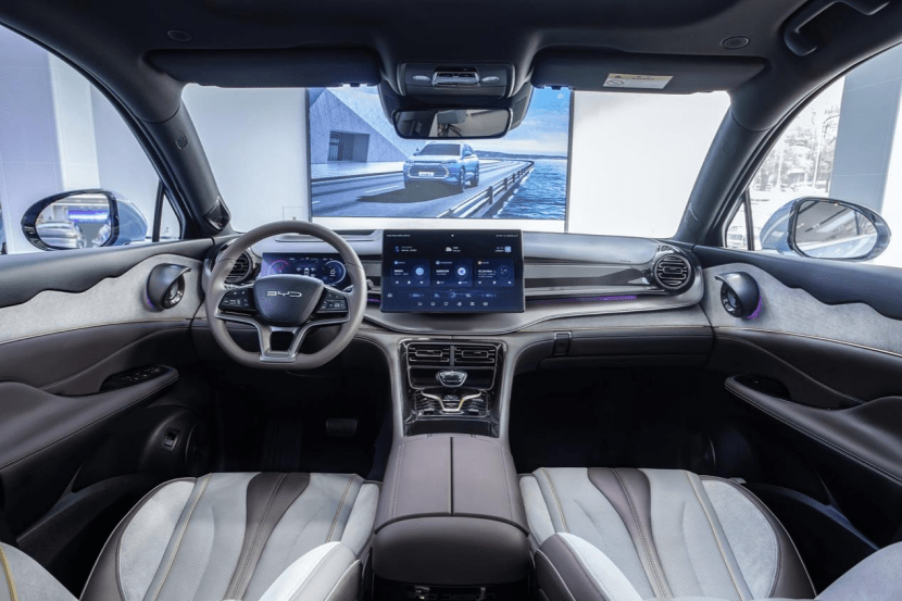 除此之外,护卫舰07搭载全新DiLink智能网联系统,全新升级的全场景智能语音功能,支持可见即可说、20秒连续对话、四音区唤醒以及媲美真人的AI声音,通过智能语音识别,便可完成对车辆的大部分功能控制。