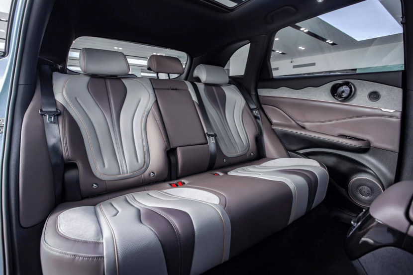 护卫舰07采用了全新大五座布局,最大程度释放后排乘坐空间与后备厢储物空间,配合长宽高4820*1920*1750(mm)、轴距2820(mm)的车身尺寸以及后排纯平地台设计,实测后排腿部空间空余近三拳、后备厢纵深空间远超同尺寸七座SUV,达到了615L,真正将空间归还给用户,实现座舱与后备厢空间最大化。与此同时,护卫舰07还配备了宽奢护航座椅,采用亲肤麂皮面料,可以提供低重力、零拘束的全身舒适承托,后排座椅支持11档20°调节,拉升座舱奢享质感,让全家出行更轻松惬意。