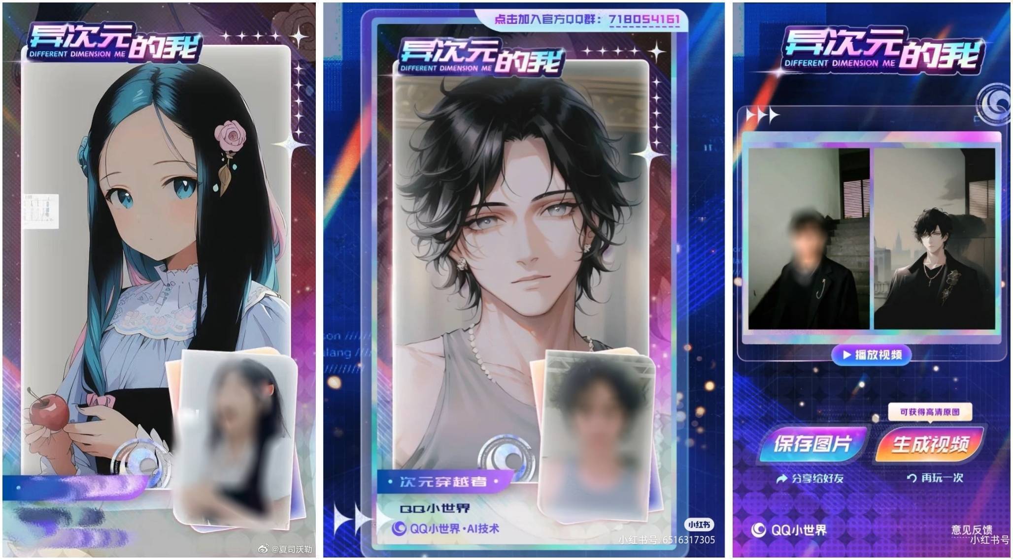 这其实是腾讯 QQ 11 月在“小世界”功能中上线的二次元 AI 绘画生成器。