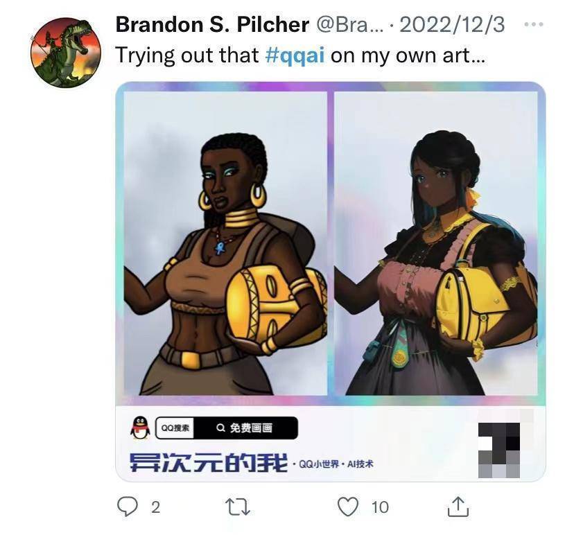 而汐元通过观察也发现,在推特上此前曾引发的肤色识别问题,也已经得到解决。最新贴出的“异次元的我”画作,已经能够准确识别面部肤色,而且画作的效果更佳,得到了海外朋友们很不错的反响。