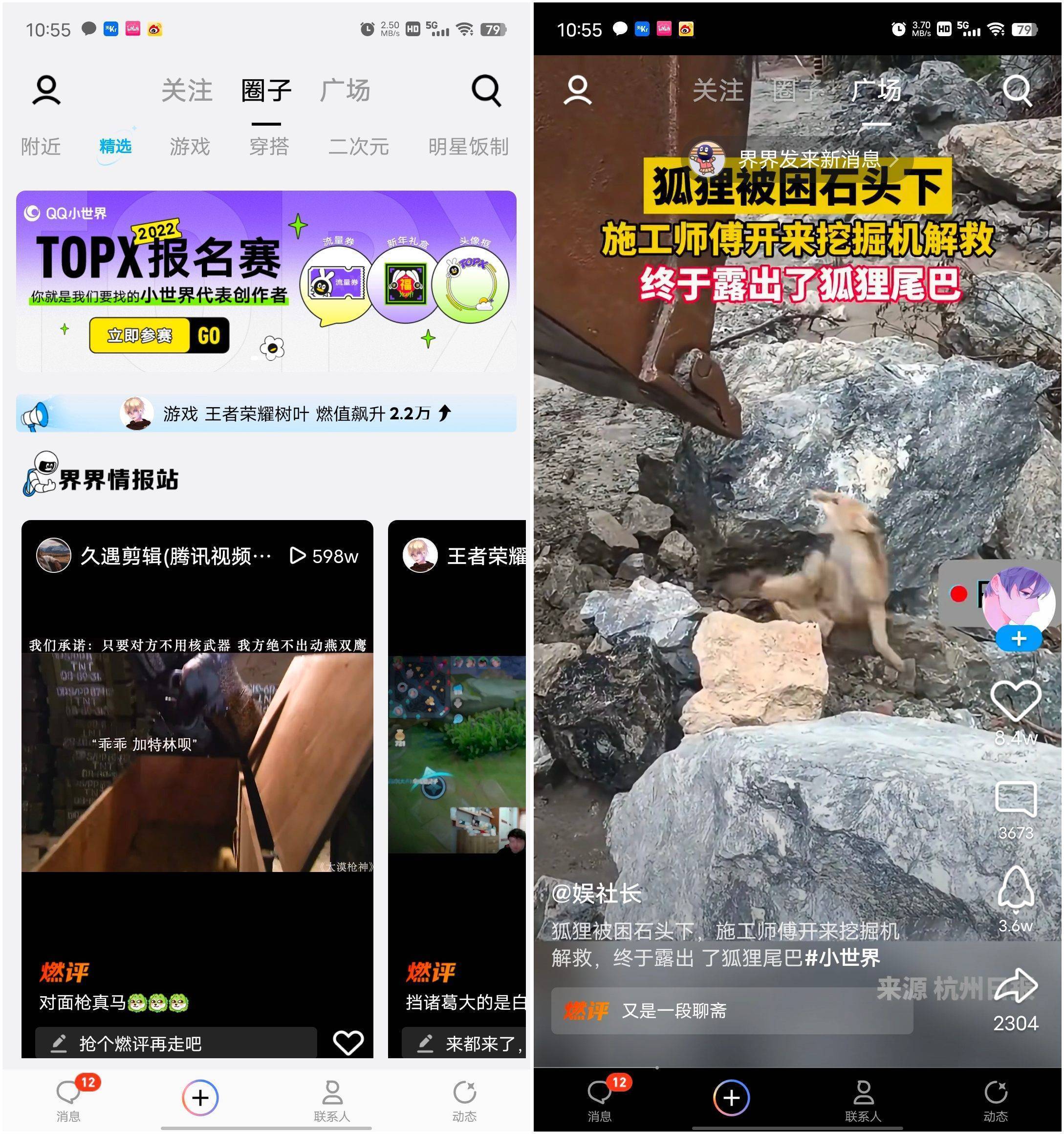 “小世界”是 QQ 从今年 3 月开始陆续上线的社区化场景功能,以短视频 + 直播内容为主。