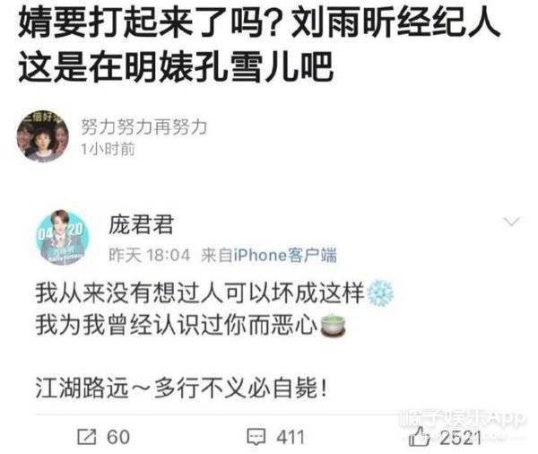 经纪人三年前因为疑似内涵孔雪儿,