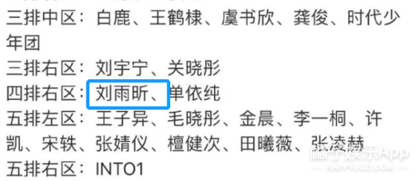 作为C位出道的刘雨昕只坐到第五排、甚至还没有舞台表演⬇