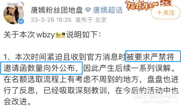 (粉丝团的说法是:被要求严谨将邀请函数量对外公布)