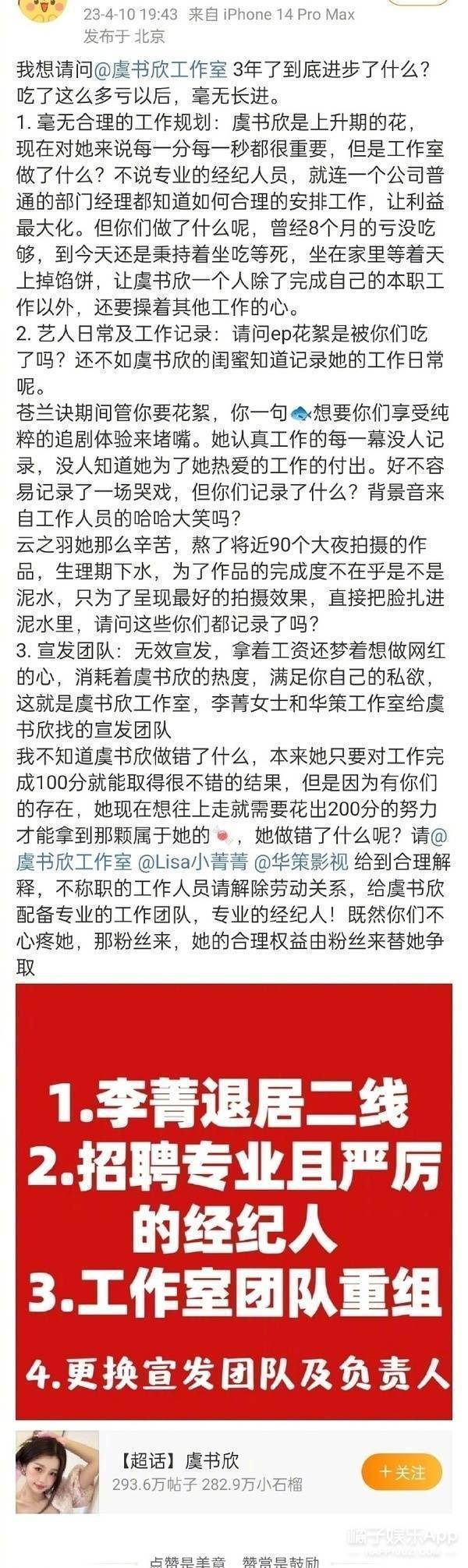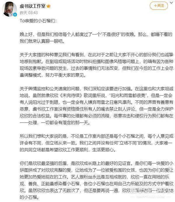 虞书欣是直接发声维护工作人员⬇