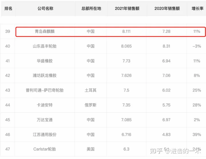 但从轮胎的销量和竞争力而言,国内轮胎已经完全有实力和国际品牌掰手腕了,2022年,美国《轮胎商业》杂志评选的全球销售额top 75轮胎厂商中,中国品牌占了34名。而我们上面提到的森麒麟轮胎也获得了全球39名。