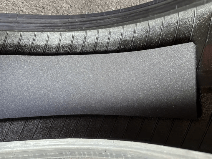 聚氨酯静音棉轮胎,则是在轮胎内部,通过特制的粘合剂,附着了一层定制的发泡隔音棉,它有细密的气孔,以及2cm左右的厚度,能够吸附轮胎内外部的噪音传递,并吸收地面振动,提升静音性和舒适性。