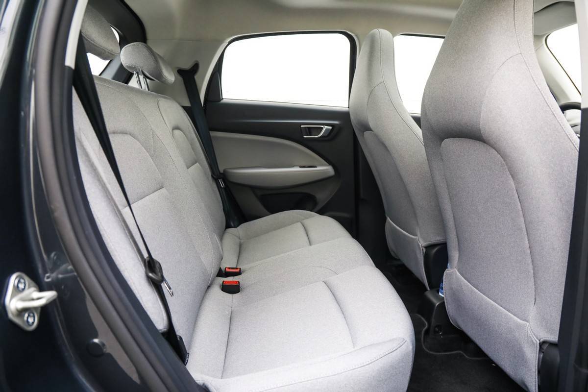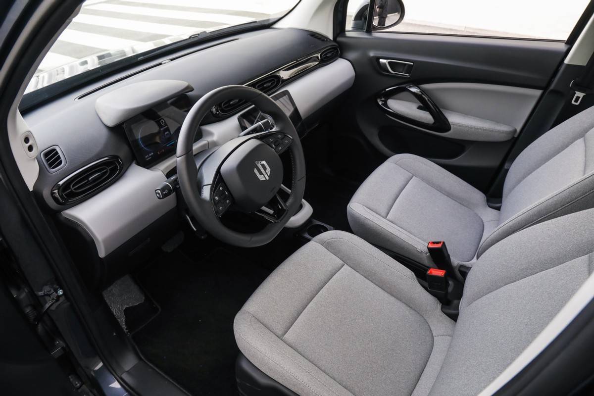 小蚂蚁热爱版的尺寸更小,相应里面的空间更局限,中控台上方以及门板内侧等区域都采用了软性材质包裹,但就是比较薄,D型方向盘给驾驶员的腿部留下了更多可活动空间,但后座高个子仅有一拳的腿部空间会有些狭窄;零跑T03的310轻享版的高度更高,对高个子也更加友好。