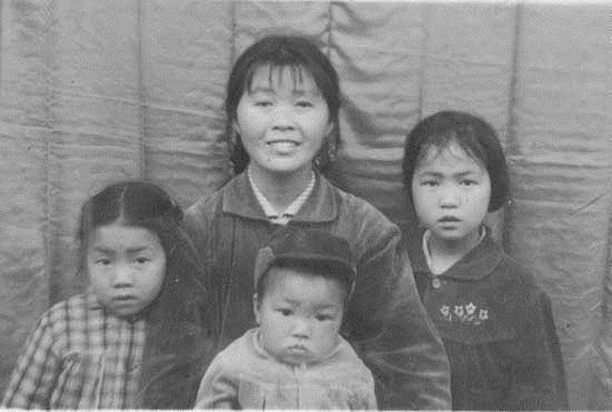 1973年 王本华和3个儿女在四川永川县珠玉村老家