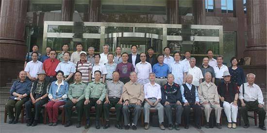 2012年5月25日,基建兵回忆史料编辑委员会在北京召开老干部座谈会时合影。周绪银(左前1)参加会议。