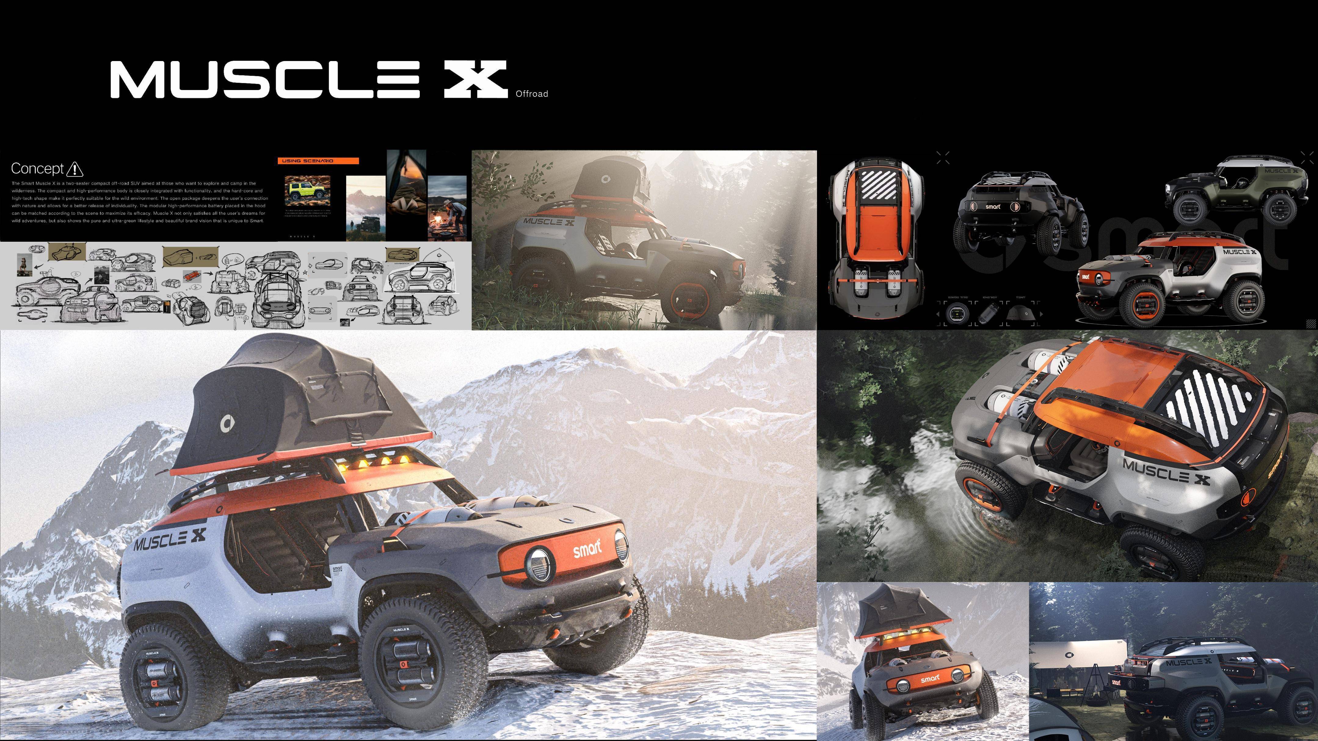 车如其名,这款“肌肉型”越野车精彩诠释了smart“新奢潮趣”的品牌调性,巧妙地将出行方式与休闲生活相结合,展现出对未来出行的创新思维和独特视角。作品通过融合露营等户外活动元素,与smart的都市出行理念形成完美呼应,呈现出既环保又新奢时尚的未来出行愿景。