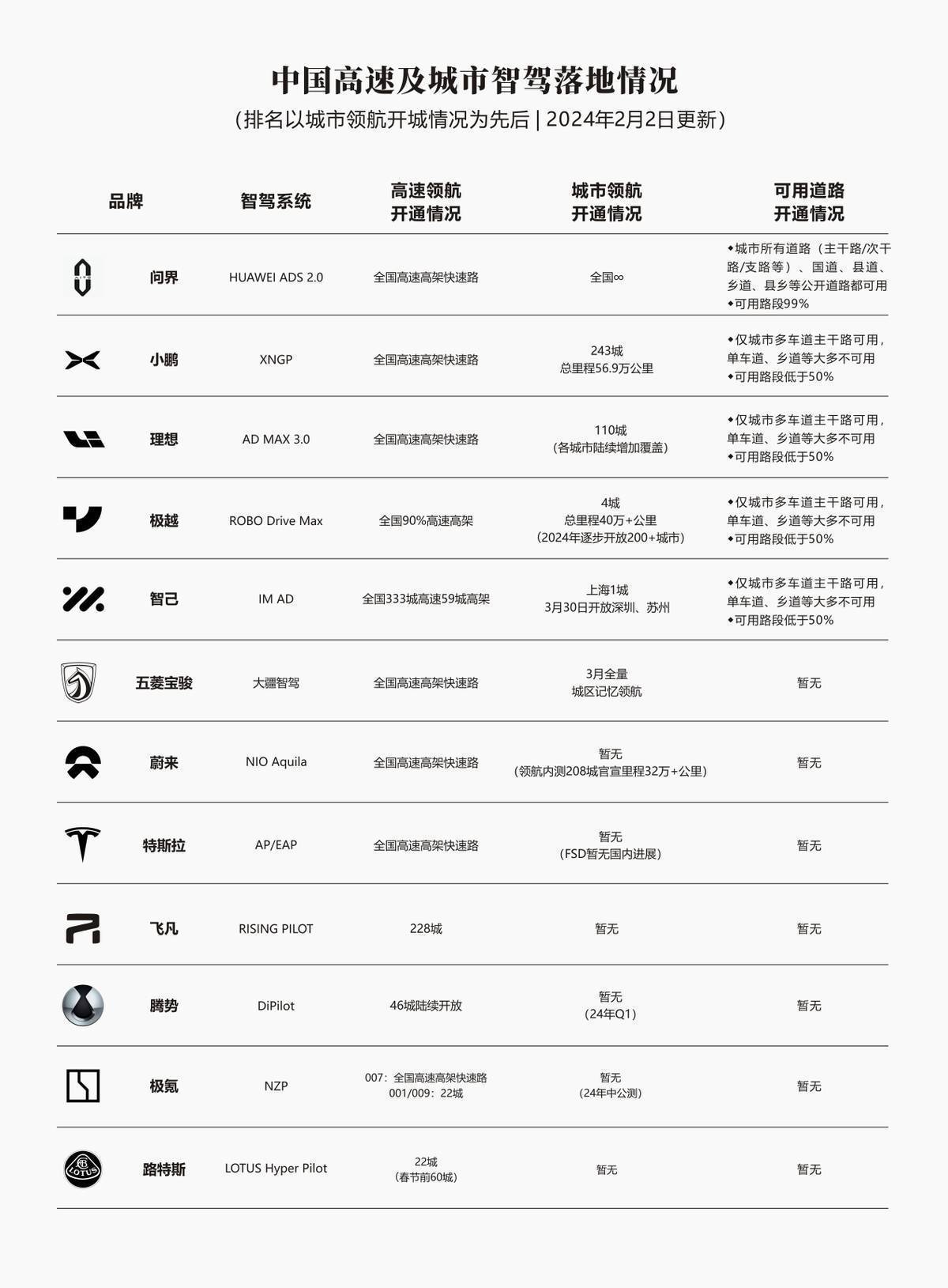依托华为在智能驾驶领域领先的技术实力,问界新M7搭载的HUAWEI ADS 2.0在2024年2月中国高速与城市智驾落地情况排名第一。有车主在社交媒体上分享道:“自从我的新M7 OTA升级了无图智驾功能后,之后的自驾出游会让我更省心、更放心。全国无图都能开,即使自驾到陌生城市,新M7也能帮我轻松应对各种路况。”还有车主表示:“问界新M7新升级的华为ADS高阶智能驾驶系统真是太强了,无图智能驾驶全国都能开,让我真正感受到了科技改变出行的魅力。”