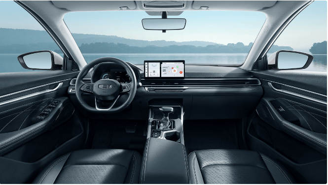 其次,在内饰方面,第四代帝豪冠军版也做出了很大的提升。全车内饰软质覆盖率高达85%,大大提升了车辆质感。中控台采用10.25英寸全液晶仪表和12.3英寸中控屏的双大屏设计,同样使用大面积软性材质包裹,触感柔软,质感出众。此外,车辆还配备了丰富的智能配置,如GalaxyOS智能生态系统、AI语音、智能控制互联、互联生态等先进功能,以及540°透明底盘功能,让驾驶变得更加便捷和安全。