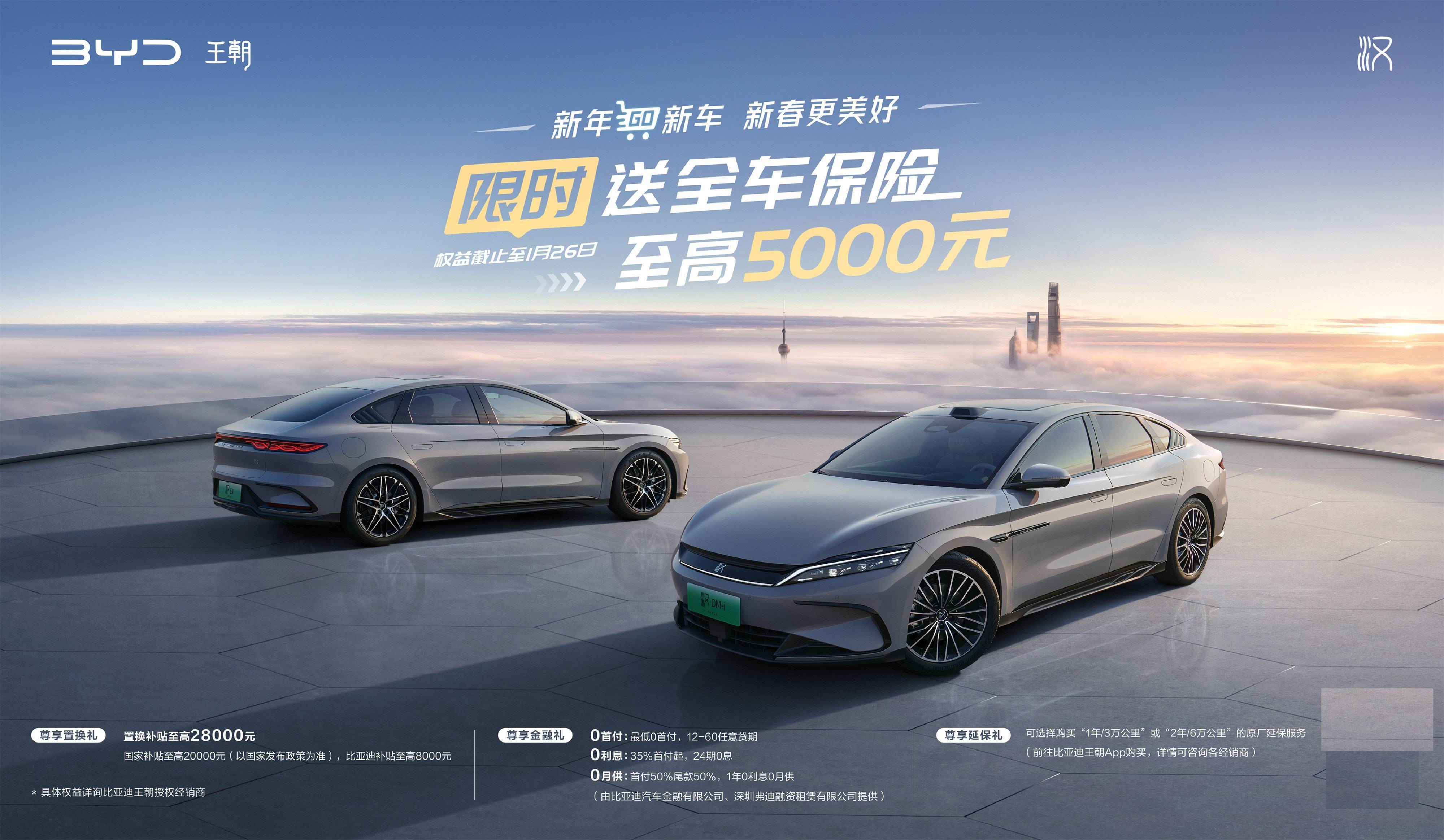今年春节时间提前了,年末准备买车回家过年的各位,可以开始准备起来了。就在近日,比亚迪王朝网重磅推出“新年‘GO’新车,新春更美好”限时钜惠福利活动。即日起至2025年1月26日,购买王朝网旗下多款车型,均可限时获赠至高5000元全车保险!其中,王朝旗舰轿车汉家族也在优惠之列,预算20万左右选轿车,2025款汉就相当合适。