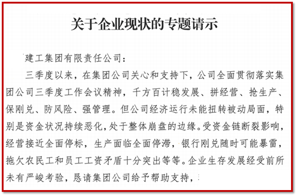 如今,混合所有制企业已经占相当数量,但是混合所有制企业数量的激增并没有转化为国企活力和经营效率的大幅提升,甚至越混越差、陷入经营危机,其中因受房地产崩盘冲击的建工企业尤甚。我们看看某建工集团的请示就可略窥一斑。