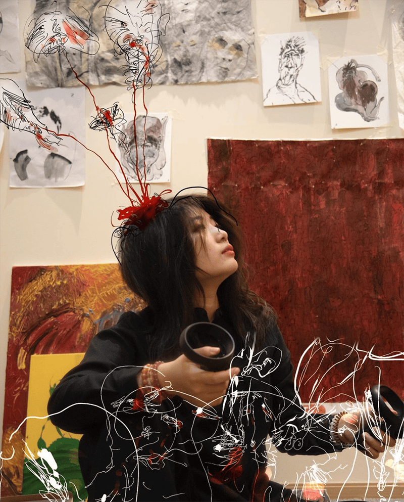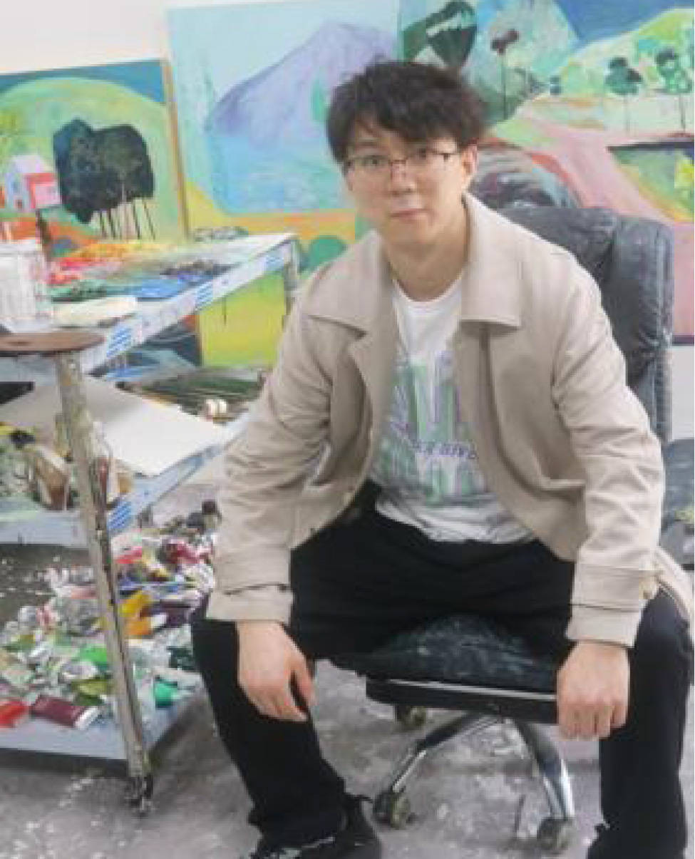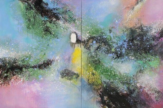 创作理念:多重空间的切换。我打破自然主义的传统创造出了多重切换空间。将人造物的概念引入作品中。想创造出超越普通视觉能力的距离。像迷宫一样使读者包围其中。想创造出让人迷失在魔法森林的空间。像进入演唱会一样,让观者迷失其中,从而把作品限定在视觉中。有时当我沉静在自己的作品中时,自己就像玻璃盒子里的小人一般。我们身陷其中,颜料和色块就像一朵朵雪花落下,绘画与自然形成了联系。这个过程很美好,联系没有边界,不会停下来。我想创造出魔法般的空间,就像你被迷雾吸引想再往前迈一步,结果却在百里花海。
