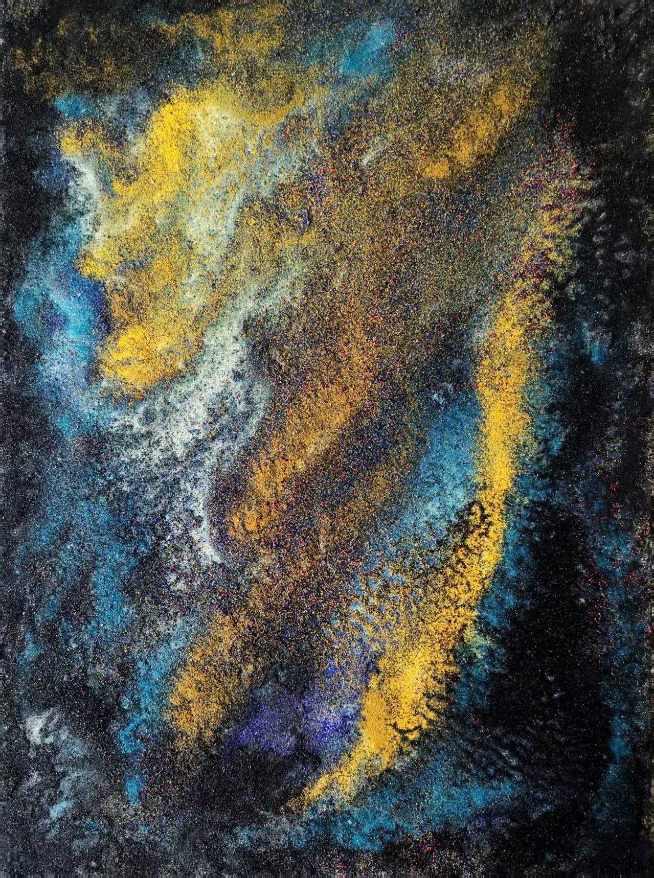 创作理念:诗歌是我这系列作品的创作灵感源泉,深邃而富有哲思的词句让我在阅读中感受到生命的复杂与宁静。我试图通过抽象画的形式,将这些情感转化为色彩与线条。我用深蓝与黑色表现时间的深邃,点缀亮黄色和白色象征生命中的瞬间感悟,用线条捕捉生命的活力与起伏,用几何形状的组合展现心境的复杂。创作过程中,我的心境随着诗歌起伏,将内心的平静与纠结融入画布。希望这些画作能成为情感的载体,让观者与诗歌的魅力产生共鸣,感受内心世界的深度与广度。