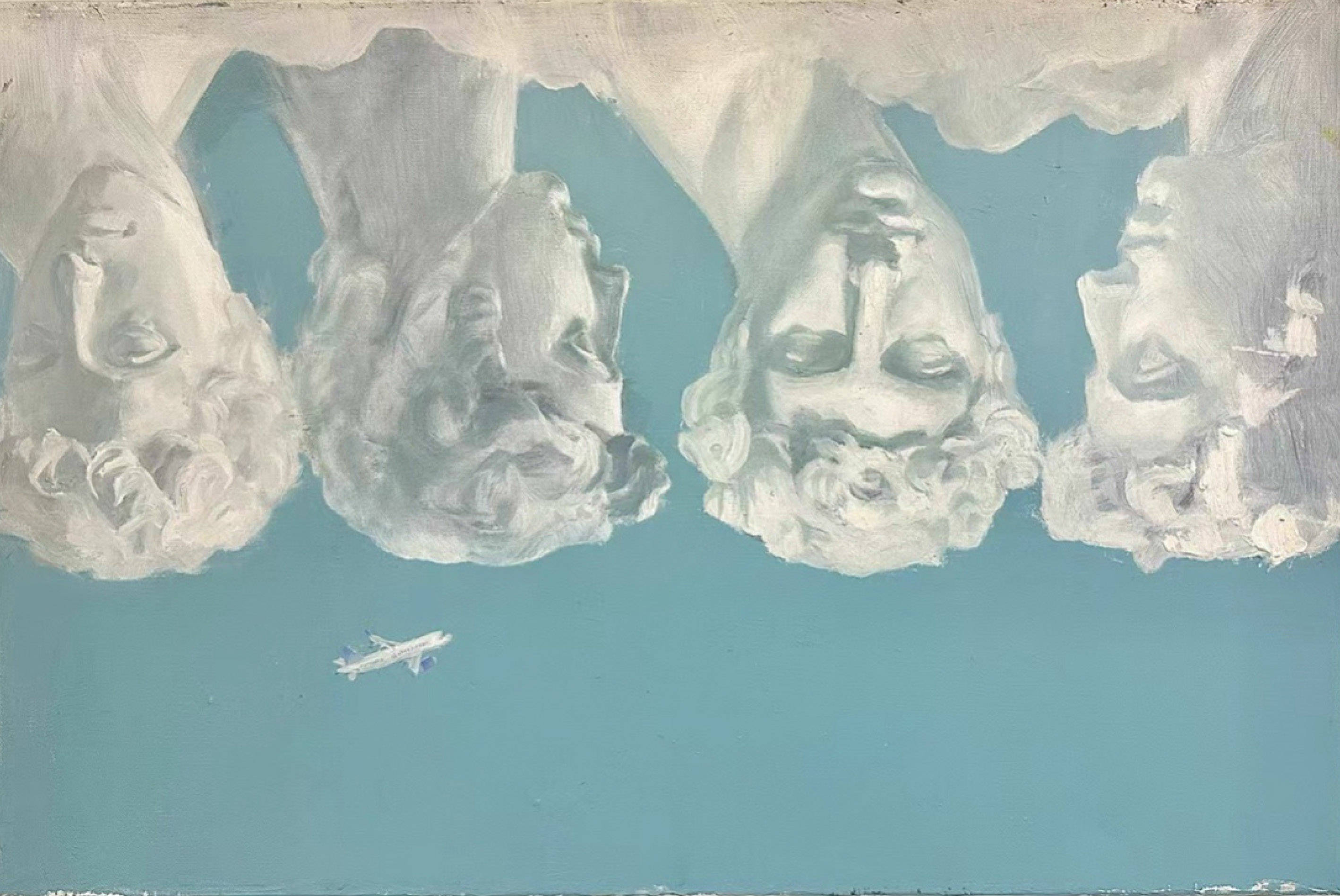 创作理念:我是一个很喜欢拍天空的人,经常和朋友相互分享,有一次我发现一朵云像石膏像——小卫,就对小卫和云像有了无限遐想。从那之后,我每次坐飞机都会想自己会不会与小卫相遇,会不会天空中就有像小卫一样的云呢。其实答案我们并不知道,小卫或许就在我们身边,只是没有被出现。我看着画室里静物台上的他,又看向窗外的云,那时,天空就像湖水,眼前的小卫就像云朵的倒影,洁白、透亮。我只有在放空时才会这么想,才会这么向往美好。