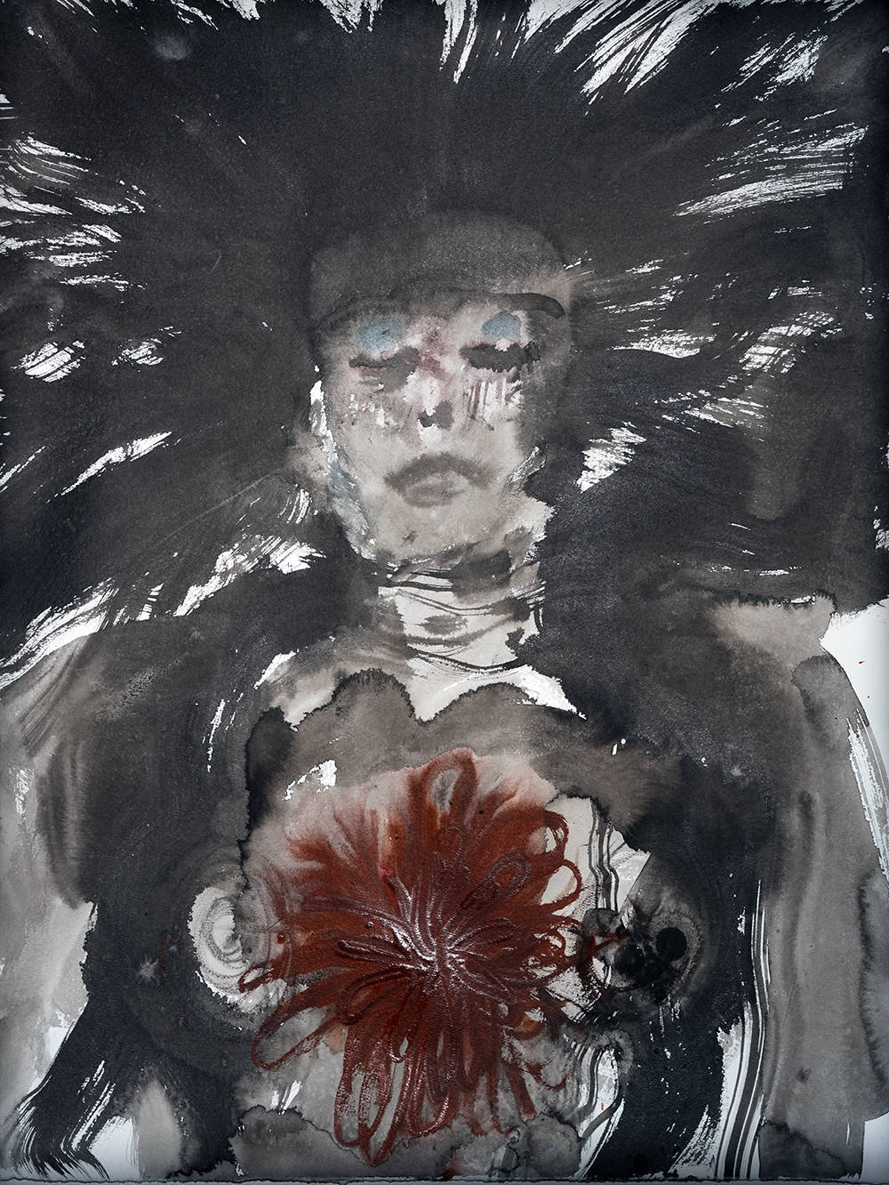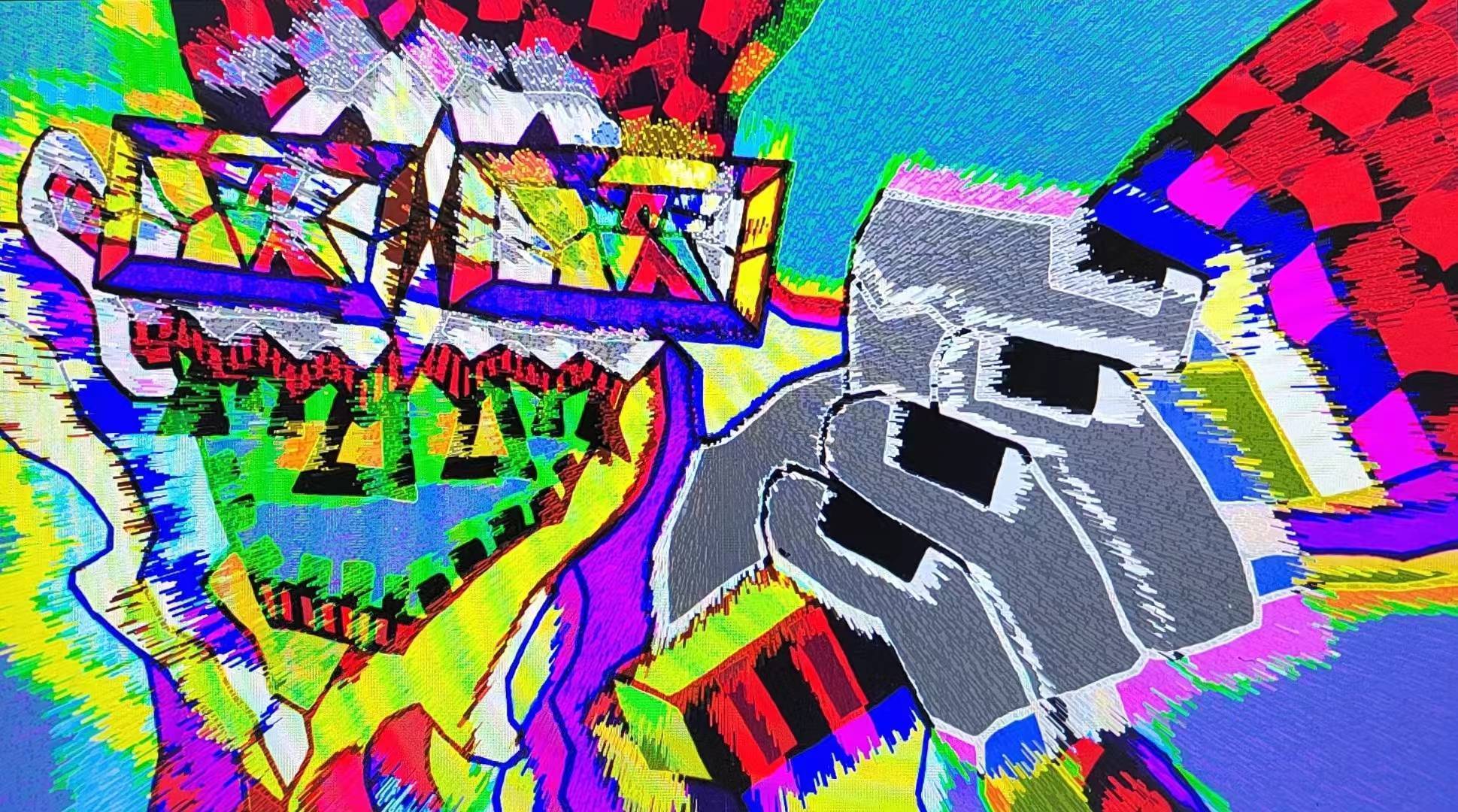 创作理念:这幅作品的创作原点始于对AI图像生成机制的反向观察——当算法被输入"人类愤怒表情”的语义指令,却输出了一张类似打哈欠的图像。这种技术执行与语义预期的错位,成为作品建构的核心悖论:当机器试图通过数据模型解析人类情感的视觉符号时,暴露出情感编码系统的根本异质性。画面以水墨绘画的肌理结合丙烯的色彩质感,使机械生成的几何化面容与自然主义的生理褶皱形成某种意识对抗。