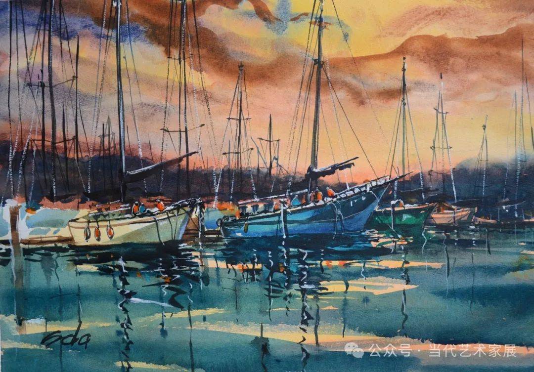 《港湾 》 孙大千 水彩画 54x39cm 2025.3