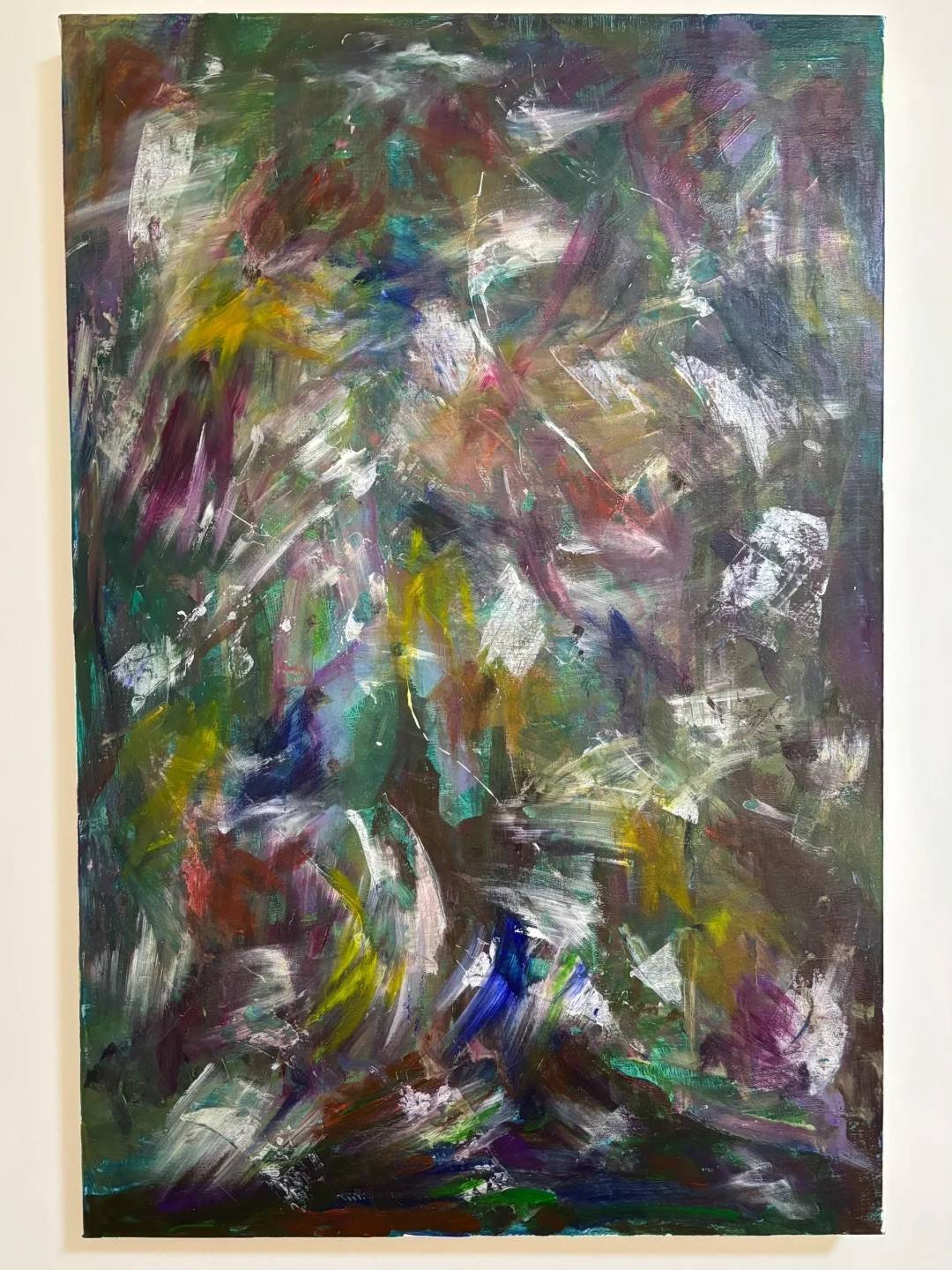 创作理念:在抽象表现主义的创作中,奔放的笔触与色块的激烈碰撞交织成画面核心,厚重的颜料肌理堆叠出挣脱具象束缚的动态平衡。我摒弃对现实的摹写,转而以色彩的冲撞、线条的轨迹与空间的解构作为载体,将内在情绪转化为视觉语言。观者既能直面画布上凝固的爆发力,又能在看似无序的色层间捕捉到隐秘的视觉韵律。这种创作本质上是混沌与秩序的博弈。当画笔成为连通潜意识的桥梁,颜料在失控与掌控的裂隙中记录下不可言说的精神震颤。被现实规训的视觉经验在此刻瓦解,每个观者都在色彩的深渊里照见自我的灵魂投影。抽象艺术如同永恒的诘问——它不寻求解答"这是什么",而是以破碎的形态叩击着"你为何存在"的生命原题。