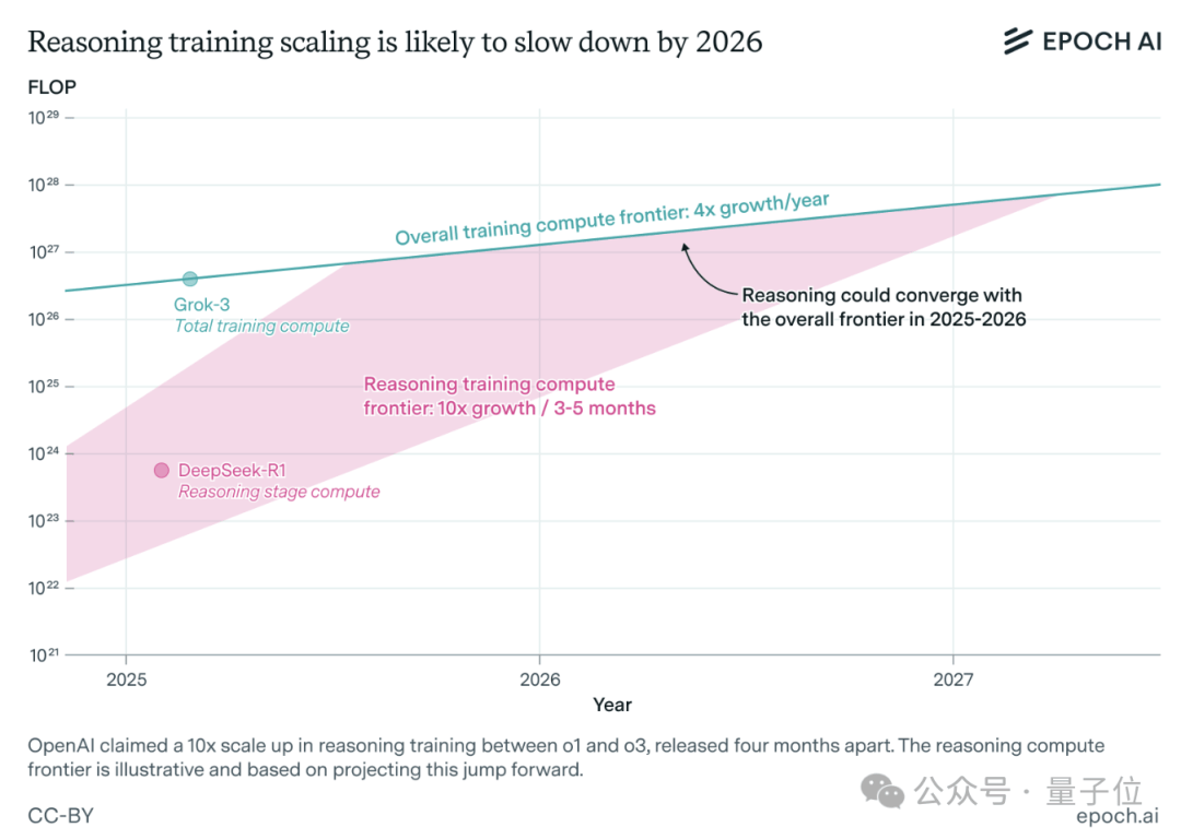 Epoch AI分析道:“ x轴很可能显示的是推理训练所需算力而不是总算力。”