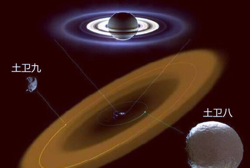 那这些细小碎屑又是哪来的呢?科学家推测,它们应该主要来自土卫九,这是一颗运行在更外层的土星卫星,当微陨石或小天体轰击其表面时,会产生大量的细小碎屑,随后这些碎屑会在土星引力的作用下向内迁徙,由于在迁徙过程中,阳光的热量会分离出其中的挥发性物质,因此当土卫八捕获到它们的时候,其颜色就已经变暗了。