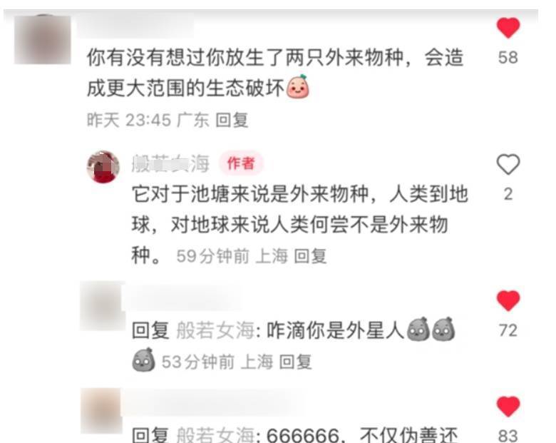 最近一个博主在社交平台上分享了自己放生两只牛蛙的事件,但是她没有引来好评,反而被网友批评到不得不删帖。