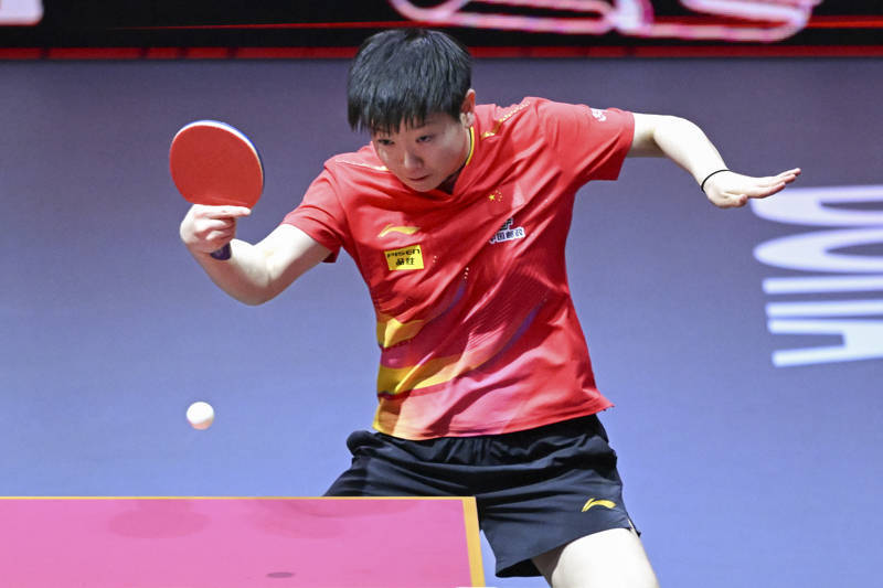 2025年5月17日,在卡塔尔多哈举行的2025年世界乒乓球锦标赛女子单打首轮比赛中,中国选手孙颖莎4比0战胜乌克兰选手梅提妮娜,晋级下一轮——新华社图