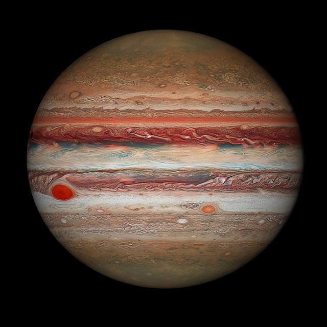 木星是太阳系最大的行星,直径约14.3万公里,质量是地球的318倍,作为一颗气态行星,它主要由氢(90%)和氦(10%)组成,表面是流动的气体云层,没有固态地表,所以理论上来说,小行星撞击木星应该会直接穿过去才对。