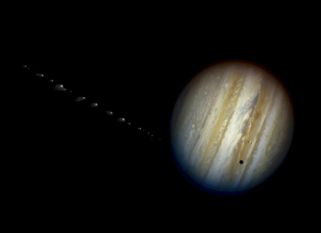 这表明小行星(或彗星)非但没穿过,反而被木星吞噬了,这就是因为之前提到的不同深度的大气阻力。